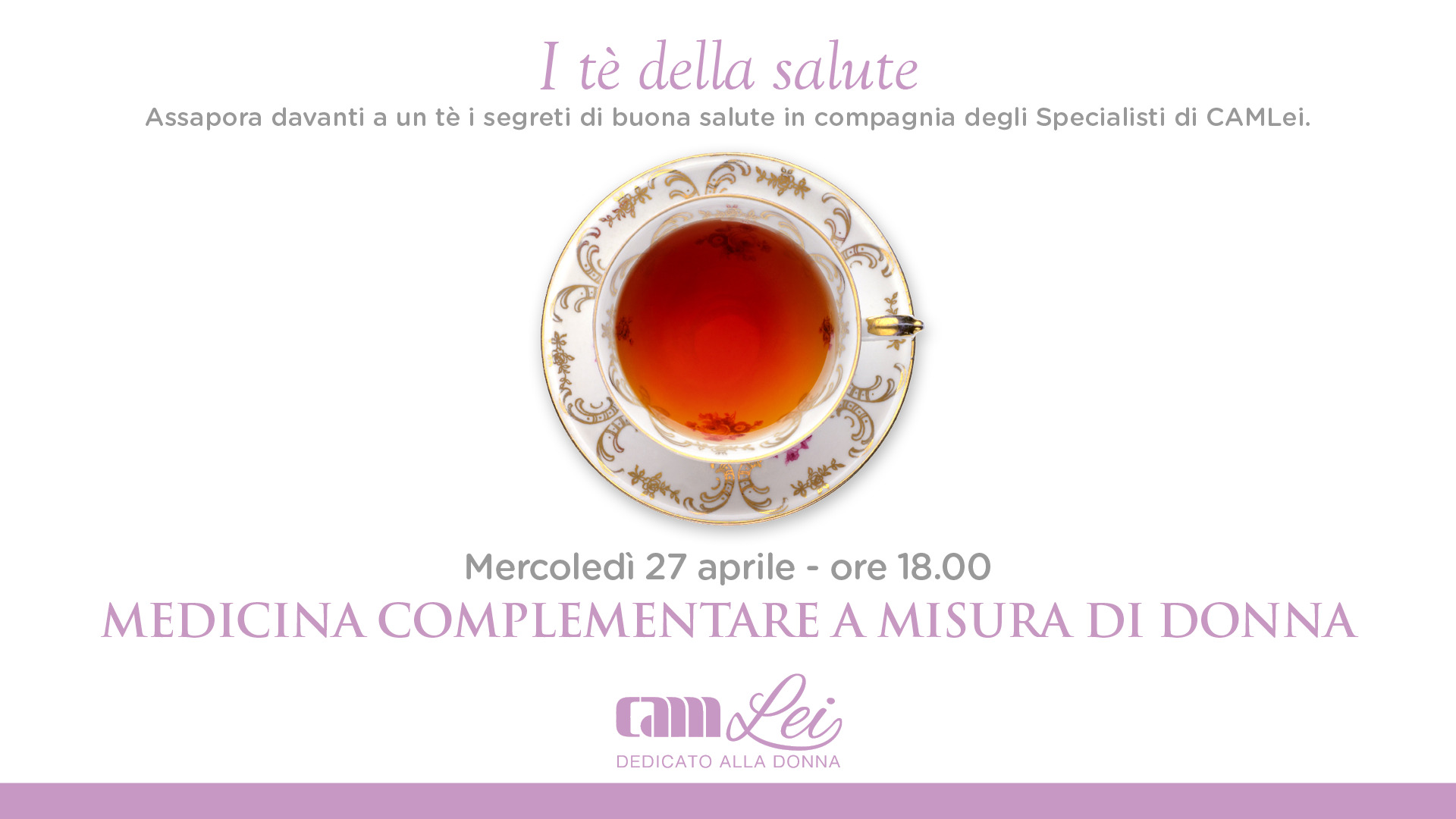 Mercoledì 27 aprile, ore 18:00, nuovo appuntamento con i Tè della Salute. Con i nostri Specialisti parleremo di “Medicina complementare a misura di donna” in presenza presso l’Auditorium Angelo Gironi, al terzo piano del Polidiagnostico di Viale Elvezia.